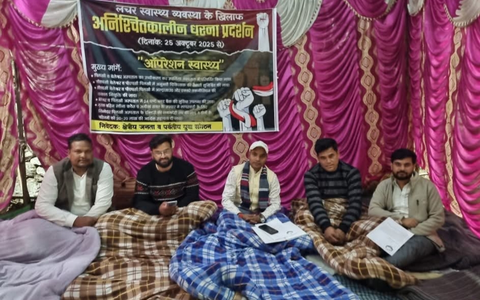 अस्पताल में स्वास्थ्य सुविधाओं की मांग को लेकर युवा नेता सन्दीप आर्य, जिला पंचायत सदस्य, हड़ियाना मल्ला श्री विक्रम सिंह घनाता, जिला पंचायत सदस्य चक्रेडा श्री अनुज शाह, सामाजिक कार्यकर्ता श्री हरीश रावत, युवा नेत्री सुनीता रावत, लोक गायक श्री शांति श्रीवान, क्षेत्र पंचायत सदस्य श्री पुरषोत्तम, मुकेश आर्य, क्षेत्र पंचायत सदस्य श्री नित्यानंद कोठियाल, श्री नरेंद्र रावत जी, श्री शूरवीर सिंह रावत, संजय शाह आदि शनिवार को अनिश्चतकालीन धरने पर बैठ गए।